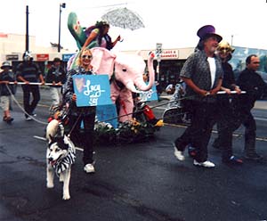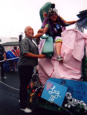 Lucy's float in the Ventura County Fair parade was a Pink Elephant! Her float was pulled by 6 men and started to pick up speed, almost hitting the Grand Marshall twice! The Pink Elephant float took 1st Place Trophy!!! Special thanks to Katie & Michael Levine, Will Proffer & Danny Ortiz of "Wood Wizards" for helping build it. Look out! Pink Elephants on parade! |